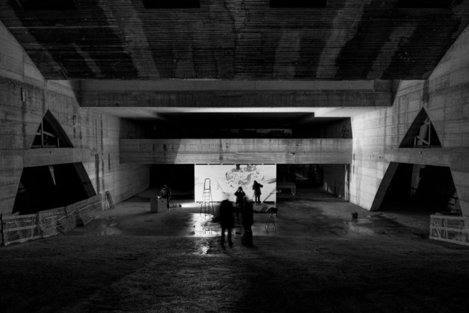 Questa cosa desiderata già dal primo momento da Michele, uno dei due curatori, che ho cercato di frenare e contenere all’interno del paese di Castelbuono fino a che ci sono riuscito, ha potuto toccare alcune città siciliane e concludersi a Gibellina nella progettualità di Scribblitti per la Biennale di Architettura affiancato dagli architetti dello studio AM3 di Palermo, uno dei cinque studi invitati all’Arsenale e dagli assistenti di Mario Cucinella.