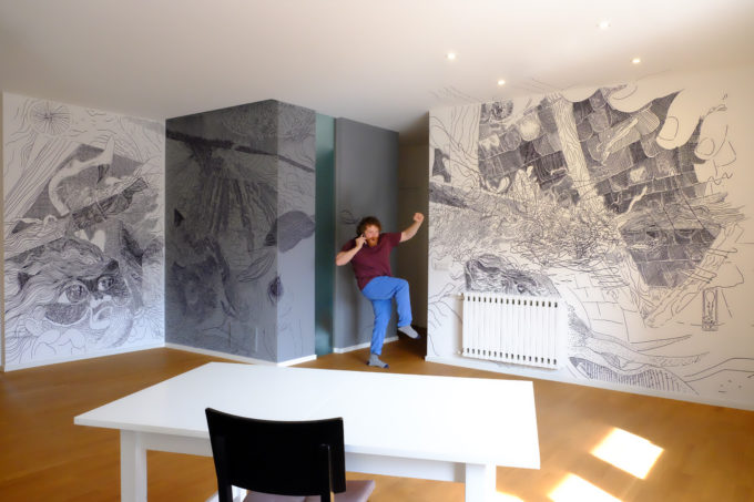 Scribblitti è si una performance a tempo di interazione e disegno a mano libera, ma alla fine della serie di interviste e disegni nella grande teoria delle cose l’ho pensato con una giornata conclusiva di porte aperte alla cittadinanza in cui le persone possono entrare e vedere che cosa è stato fatto.