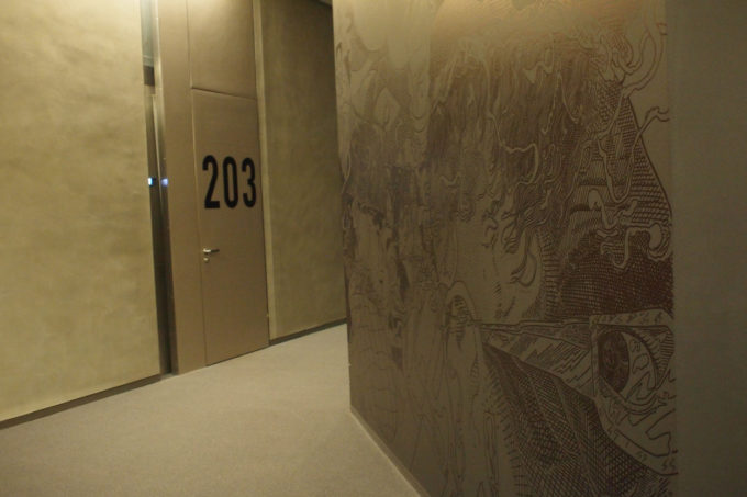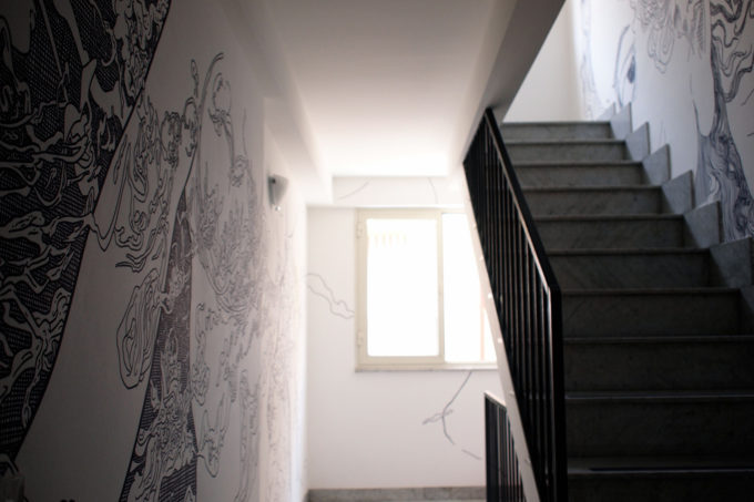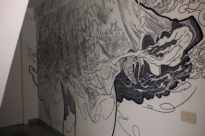A questo giro visto che avanzava del tempo e la storia che avevo raccolto meritava di essere sviluppata meglio con l’aggiunta di una ulteriore parete ho chiesto il permesso di usarne una, in un angolo cieco, all’interno di un corridoio.