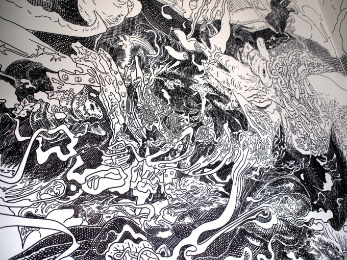 Ero stato invitato lí per descrivere attraverso l’ascolto e il disegno quello che era accaduto a causa della sua esondazione che non solo aveva allagato case e trascinato ogni genere di materiali fuori dal suo corso, ma aveva anche avvelenato la fauna circostante per via delle sostanze usate nella coltivazione agricola del territorio, causando la morte di molti animali selvatici.