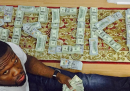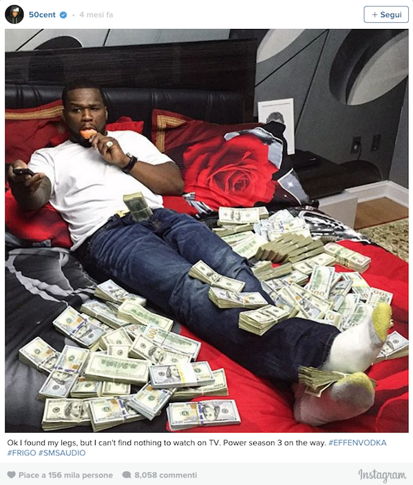 Il rapper statunitense Curtis Jackson, noto col nome d’arte di 50 Cent, ha dichiarato bancarotta lo scorso luglio. È stato condannato a risarcire per 5 milioni di dollari una donna di cui aveva diffuso un video che la mostrava fare sesso e aveva aperto una società nel settore della boxe a cui le cose non sono andate molto bene. Da quando ha dichiarato bancarotta, però, Jackson ha continuato a pubblicare su Instagram foto che lo mostrano con un sacco di soldi (nella prima immagine qui sotto ha usato le banconote per comporre la scritta “broke” cioè “al verde”), o durante concerti per i quali presumibilmente è stato pagato, senza dichiararne i guadagni. Ha anche pubblicato le foto di una casa in Africa della quale non c’è traccia sui registri del suo patrimonio. Il giudice che si occupa del suo caso di bancarotta ha quindi chiesto che rispondesse in corte di tutti questi soldi.