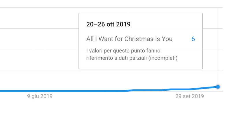 Come ogni anno, nonostante sia solo ottobre e manchi ancora parecchio al Natale, All I Want for Christmas is You, famosissima canzone natalizia del 1994 di Mariah Carey, ha iniziato a comparire tra le cose più cercate su Internet. Come mostra il sito Google Trends, che analizza i flussi di ricerche su Google e YouTube, dopo un periodo di pausa iniziato a Natale del 2018, verso la metà di ottobre le ricerche hanno iniziato improvvisamente ad aumentare, a conferma di una tendenza che va avanti da alcuni anni.