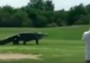 Un alligatore decisamente di grande stazza ha attraversato un campo da golf a Palmetto, in Florida, sorprendendo un gruppo di persone che stava giocando una partita. La scena è stata ripresa da uno di loro, che ha raccontato di avere pensato inizialmente a uno scherzo, tali erano le dimensioni dell’animale: “Non sapevo se ci stessero facendo uno scherzo o qualcosa. Era lì steso, si stava riposando, poi si è alzato e si è diretto verso il lago”. Secondo il giocatore, che si chiama Charles Helms, l’alligatore è lungo almeno 4,5 metri e dalle testimonianze di altri giocatori sembra che sia un assiduo frequentatore del campo da golf.