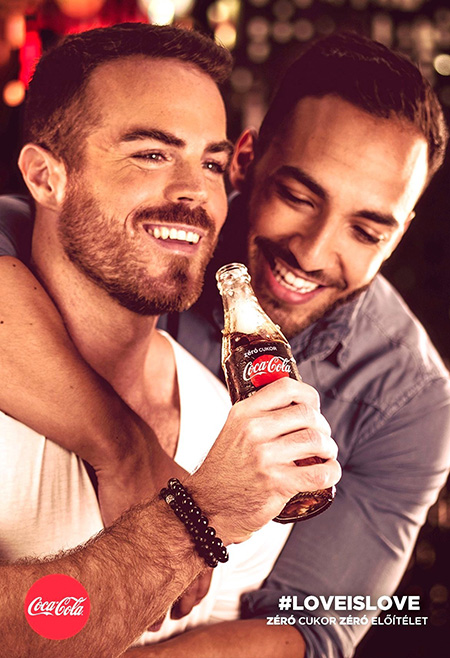 Per la campagna pubblicitaria di un importante festival musicale a Budapest, in Ungheria, Coca-Cola – che è uno sponsor – ha scelto dei manifesti in cui una coppia di ragazzi abbracciati e una coppia di ragazze che si guardano in modo complice condividono una bottiglia o bevono dalla stessa cannuccia. Lo slogan è: “zero zucchero, zero pregiudizi”. Le pubblicità non sono piaciute al governo conservatore del primo ministro Viktor Orbán e al suo partito Fidesz: Istvan Boldog, deputato e vicepresidente del partito, ha invitato a boicottare i prodotti della Coca-Cola definendo la campagna “provocatoria”.