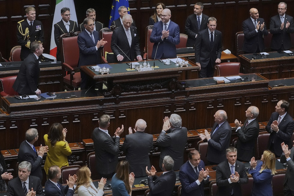 Carlo III viene applaudito dai parlamentari (AP Photo/Alessandra Tarantino)