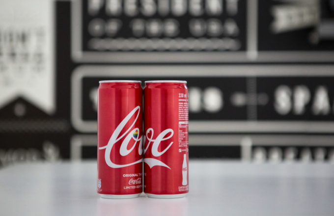Coca-Cola ha realizzato un’edizione speciale della lattina da 33 cl in occasione del mese dei Gay Pride: sarà distribuita in un punto dedicato il 30 giugno al Milano Pride, che è sponsorizzato da Coca-Cola.