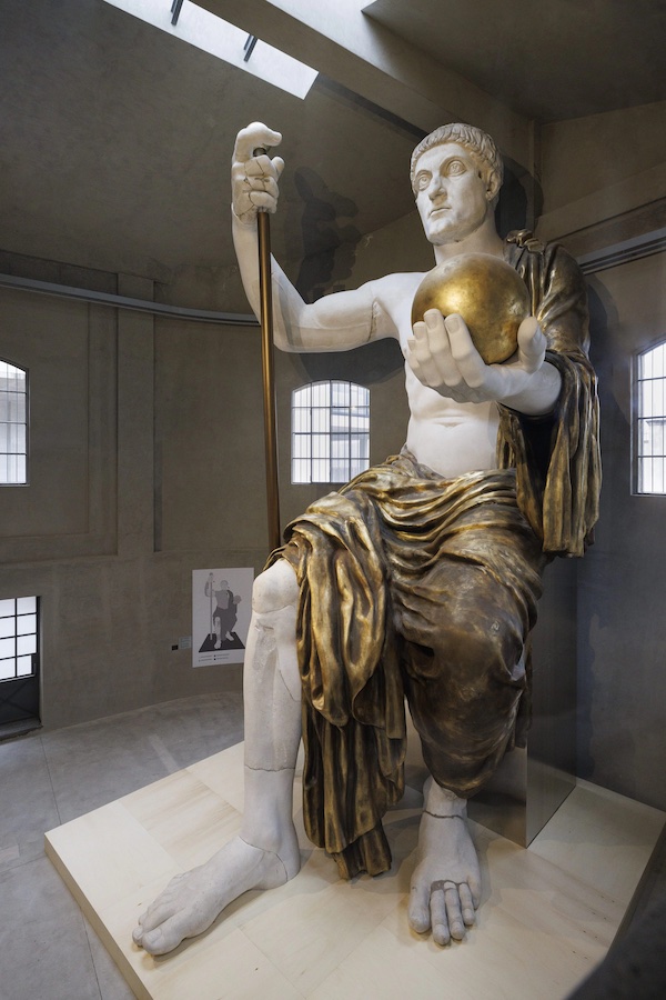 L’esposizione della statua Colossale di Costantino I negli spazi della Fondazione Prada, a Milano. 2022