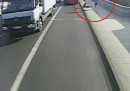 Il video della donna spinta nel traffico da un corridore, a Londra