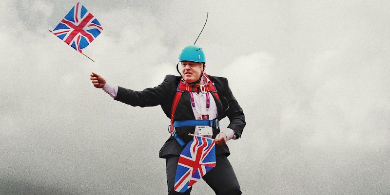 Lo stimato settimanale britannico Economist ha dedicato la copertina del suo prossimo numero cartaceo al futuro del Regno Unito dopo Boris Johnson, riferendosi alla notizia delle sue dimissioni da leader del partito Conservatore e primo ministro. Il titolo piuttosto eloquente del numero è «la caduta del pagliaccio»: è accompagnato da una fotografia scattata nel 2012, quando Johnson, allora sindaco di Londra, si fece calare da un’impalcatura con un’imbracatura per festeggiare la prima medaglia d’oro del Regno Unito alle Olimpiadi che si stavano svolgendo in città, restando poi sospeso a mezz’aria. Nella copertina, però, il filo che sospende Johnson è spezzato.