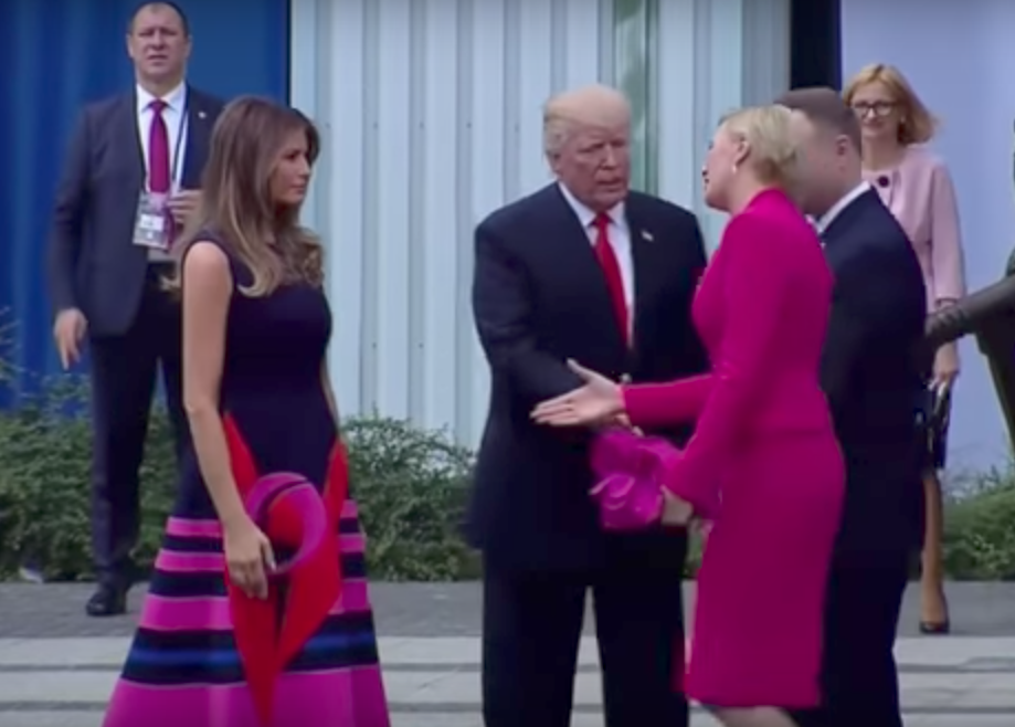 La first lady polacca ha un suo modo di affrontare la stretta di mano di Trump