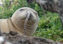 Negli ultimi giorni sui social network è girata molto la fotografia di una foca monaca delle Hawaii con un’anguilla in una narice. È stata diffusa su Facebook da un programma di ricerca sulle foche monache delle Hawaii che fa parte della National Ocean and Atmospheric Administration (NOAA), l’agenzia federale statunitense che si occupa di meteorologia e ambienti marini. I ricercatori hanno spiegato che gli era già capitato tre o quattro volte di osservare cuccioli di foca con anguille incastrate nel naso; ogni volta che è successo i ricercatori hanno liberato le foche dalle anguille e non ci sono state conseguenze negative, tranne che per le anguille.