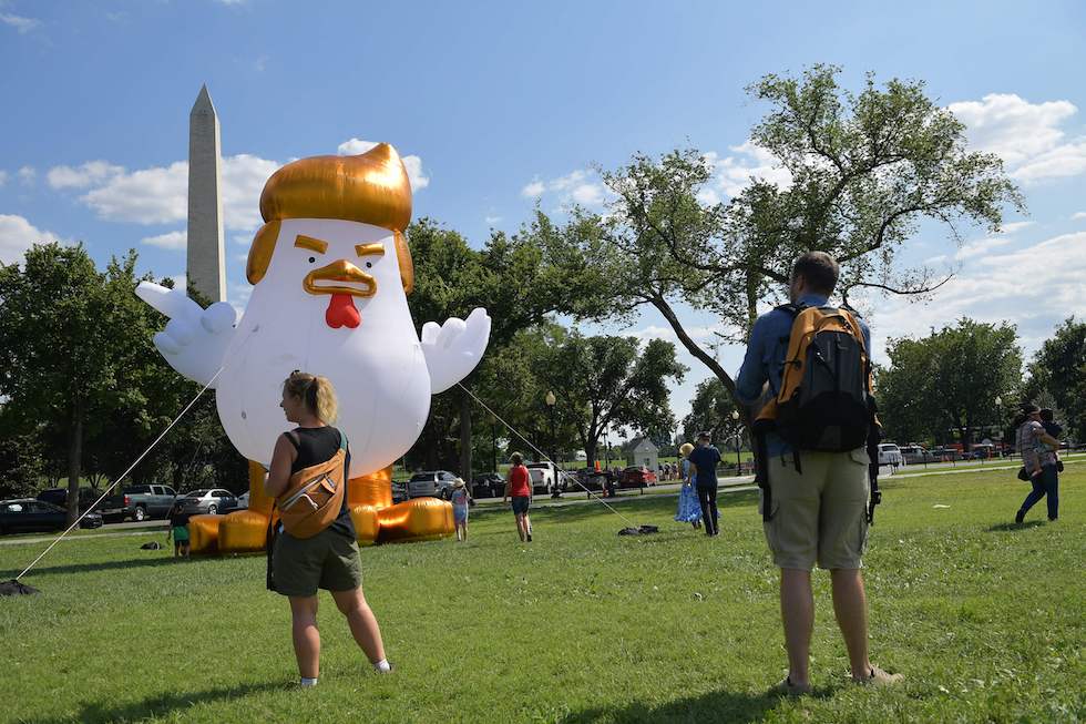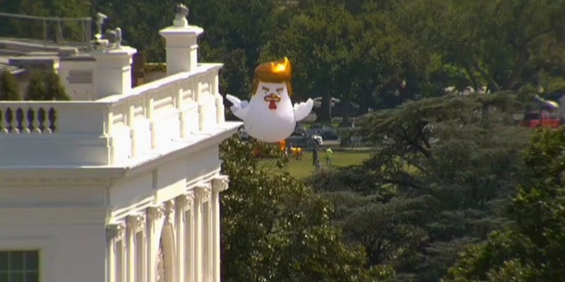 C’è un gigantesco pollo che assomiglia a Trump dietro alla Casa Bianca