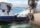 Il video di una gru che si rovescia facendo affondare una chiatta con 2.300 litri di gasolio