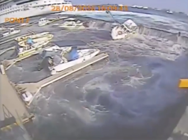 Il 28 agosto la nave da crociera Carnival Vista ha distrutto il piccolo porto Marina del Nettuno, a Messina, in Sicilia: la nave, lunga 323 metri e pesante 133.500 tonnellate, ha creato una serie di onde mentre eseguiva delle manovre per uscire dal porto e queste onde hanno travolto due pontili in cemento armato. Molte imbarcazioni ormeggiate sono state danneggiate; tra queste, anche la pilotina degli ormeggiatori, cioè la piccola barca che serve per pilotare altre navi in porto, e un’imbarcazione a motore si sono ribaltate. Non ci sono stati feriti, ma la stima dei danni è molto alta, circa 250mila euro. La Capitaneria di Porto ha aperto un’inchiesta per capire le cause dell’incidente. La Carnival ha spiegato all’Huffington Post che a causa delle forti correnti e dei forti venti, l’equipaggio ha dovuto aumentare la velocità della nave per mantenere la rotta e questo ha provocato le onde che hanno distrutto la Marina del Nettuno. Fortunatamente, grazie a una manovra correttiva dell’ultimo momento, non c’è stato contatto tra lo scafo della nave da crociera e i pontili.