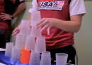 La pagina Facebook di Vox ha di recente condiviso un video di qualche mese fa che parla di una pratica – forse uno sport, dipende dai punti di vista – che ha a che fare con le piramidi fatte di bicchieri di plastica, quelle che magari avete fatto quella volta che vi annoiavate al tavolo di una festa. Il video mostra – a velocità naturale e poi al rallentatore – alcune delle migliori prestazioni dei migliori al mondo, spiegando che ci sono determinati tipi di piramidi da fare. Il video spiega anche: che ci sono appositi bicchieri usati dai campioni, che c’è chi riesce a fare tutto senza nemmeno guardare, che c’è una specie di apposita piattaforma usata per appoggiare i bicchieri e cronometrare quanti secondi ci vogliono per fare una determinata piramide di bicchieri, che questa pratica competitiva esiste da diversi anni. E che, comunque, è «molto più di un hobby».
