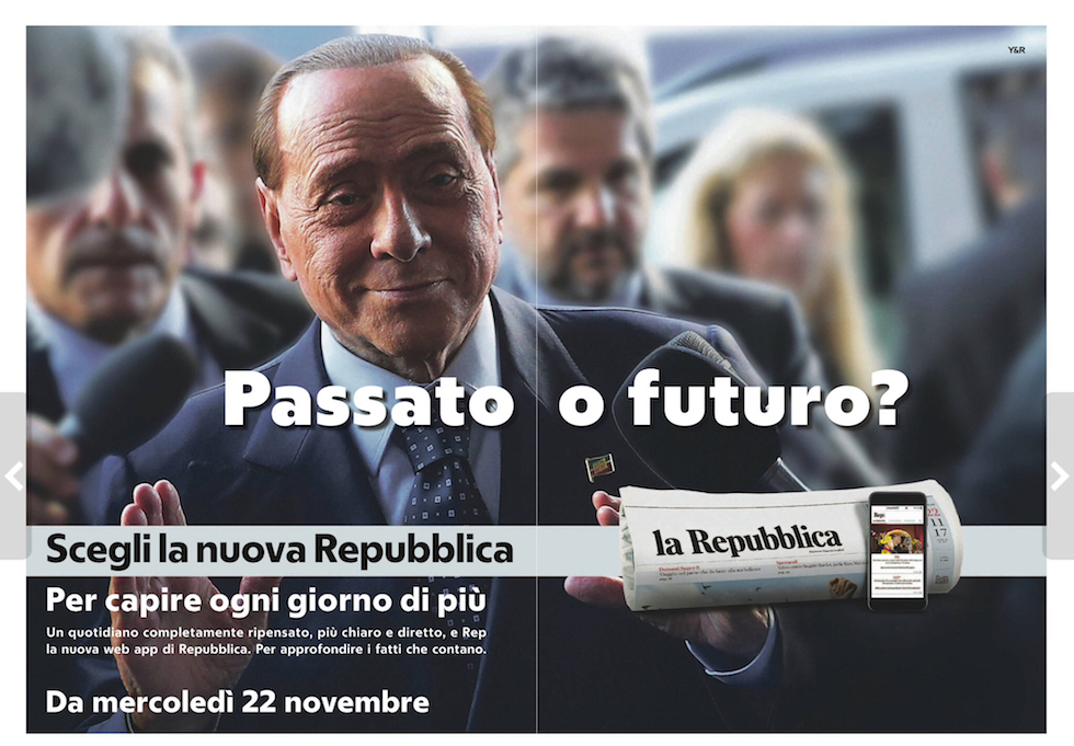 La campagna per promuovere il restyling di Repubblica, con Berlusconi