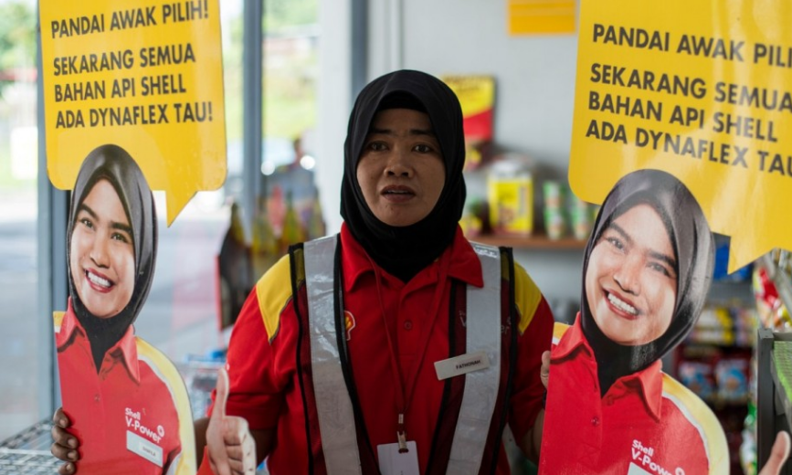 Royal Dutch Shell, la multinazionale del settore petrolifero nota semplicemente come Shell, ha deciso di rimuovere dai suoi distributori in Malesia le sagome di cartone a grandezza naturale e i cartelloni pubblicitari in cui compariva una donna, dopo che sui social network hanno cominciato a circolare foto di uomini che le toccano i seni, che la baciano, che le danno dei pugni e che fanno altri atti considerati, da loro, divertenti. La donna che appare nella pubblicità, e che indossa una maglietta con il logo della multinazionale, si chiama Nor Shafila Khairusalleh, ha 25 anni ed è un’impiegata malese di una stazione di servizio Shell.