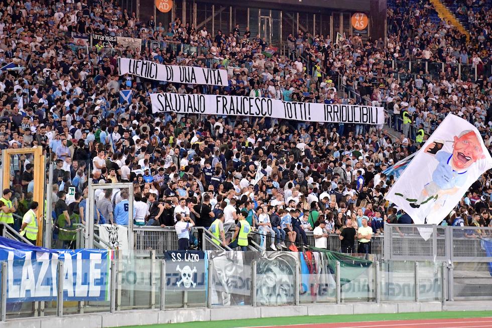 Domenica sera la Lazio ha giocato la sua ultima partita in casa di questa stagione, perdendo 3-1 contro l’Inter. Nel corso della partita i tifosi laziali hanno esposto uno striscione in curva nord per salutare Francesco Totti, a lungo capitano e simbolo degli storici rivali della Roma. Totti giocherà la sua ultima partita con la Roma domenica prossima contro il Genoa, in uno Stadio Olimpico completamente esaurito; poi molto probabilmente si ritirerà.