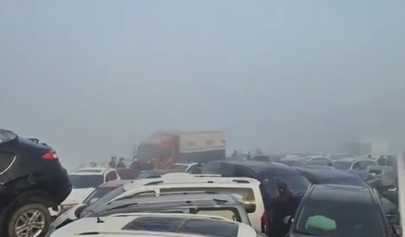 Il tamponamento che ha coinvolto più di 200 macchine su un ponte in Cina