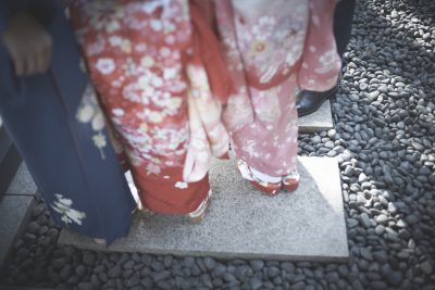 Nel frattempo è finito l’autunno, che quest’anno è stato pigro, tardo, lungo e in alcune giornate incongruamente caldo. Novembre in Giappone è il mese in cui i bambini di 7, 5 e 3 anni vengono portati al santuario per una sorta di benedizione. Il tutto si svolge così: ci si prepara mettendo il kimono alla piccola festeggiata (7 e 3 anni per le bambine, 5 per il maschi) e vestendosi un po’ eleganti (kimono le donne e abito gli uomini) per andare al santuario. Le richieste di salute e prosperità si fanno utilizzando la religione Shinto, il Buddhismo e i templi servono ad altro. Arrivati al santuario si compila il modulo con i dati, si paga l’offerta libera (ma tutti sanno di quanto si tratta) e tutta la famiglia è accolta sui tatami, nella zona più sacra dell’edificio di legno. Il gruppo riceve una benedizione, offre un rametto alla divinità e il sacerdote raccomanda la bambina agli dei indicando con precisione nome, cognome, nome del padre e indirizzo. Alla fine della cerimonia ci sono dei regalini per la festeggiata e un quaderno da colorare con i pastelli per la sorella maggiore “visto che è stata buona in silenzio”.