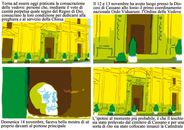 Teschio trovato su portone Cattedrale a Cassano allo Jonio