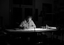 Alle pareti, fotografie di edifici, tante ai sali d’argento stampate nella camera oscura attigua, dove i rulli li sviluppiamo pure noi. Libri e poster: Ando Gilardi e la storia sociale della fotografia, la collezione completa di Casabella, molto Borges e Umberto Eco. L’Architettura della partecipazione di Giancarlo de Carlo, suo grande mentore a Venezia negli anni ’60, oggi giustamente sempre più considerato e rivalutato, proprio ora tra l’altro alla sezione Monditalia della Biennale con la mostra Radical Pedagogies.