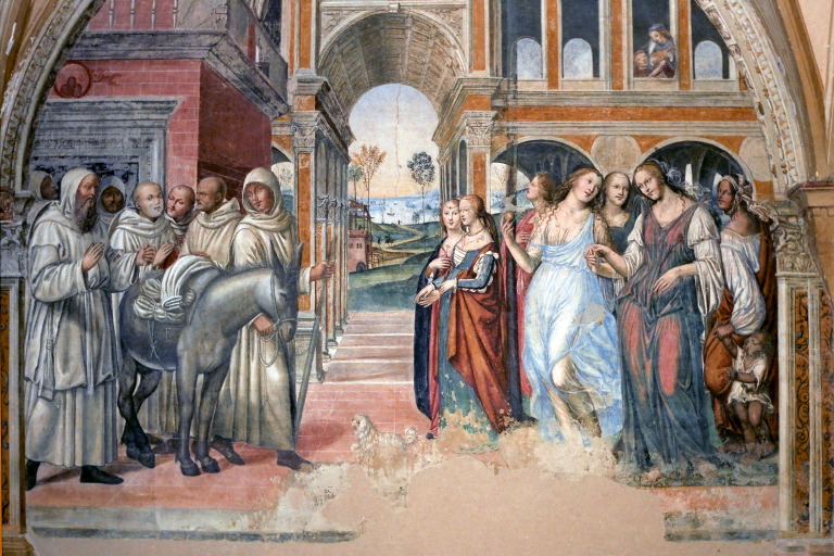 Dai, facciamo una cena elegante (Il Sodoma all'inizio aveva dipinto le giovani nude, per precisione filologica, ma i monaci di Monte Oliveto non volevano pagarlo).