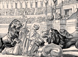 In seguito, a dar letta alle leggende, i leoni non avrebbero sempre pasteggiato volentieri coi cristiani; più volte avrebbero rifiutato di morderli (a gran scorno dei persecutori), come i loro antenati di Babilonia, i leoni che nella fossa avevano tenuto compagnia al profeta Daniele. Ma con Ignazio fu diverso. Ignazio, terzo vescovo di Antiochia, era il primo cristiano condannato ad bestias, e benché il guinness dei primati fosse molto in là da venire, a essere dilaniato pubblicamente dalle bestie del circo ci teneva in modo particolare. Lo scrisse anche in una lettera: muoio dalla voglia di morire masticato. Beh, no, non scrisse esattamente così. Però scrisse Sono il frumento di Dio, devo essere macinato dai denti delle fiere per diventare pane puro di Cristo, e così via. Dopo una preghiera del genere, i leoni non potevano che sbranarlo di gusto – sai che figura sennò.