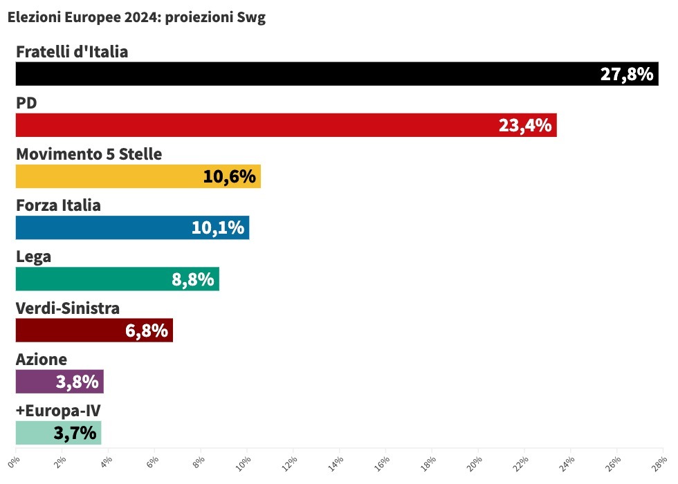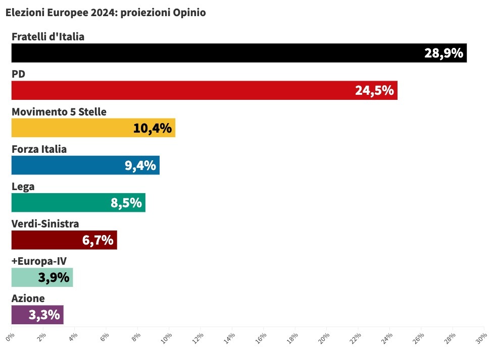 A queste elezioni europee i partiti che sono andati meglio sono Fratelli d’Italia, che è primo partito intorno al 29 per cento, e Partito Democratico, che è sopra al 24. Viceversa, sono andati male il Movimento 5 Stelle, che ha preso meno del 10 per cento, e malino la Lega, che è il terzo partito della coalizione di destra dietro a Forza Italia (sono però entrambi sopra al 9 per cento). Per quanto riguarda i partiti più piccoli, Alleanza Verdi e Sinistra è andata molto bene e supererà tranquillamente la soglia di sbarramento del 4 per cento (ha preso il 6,6), mentre la lista di Matteo Renzi ed Emma Bonino (Stati Uniti d’Europa) e Azione di Carlo Calenda no, quindi non eleggeranno europarlamentari.