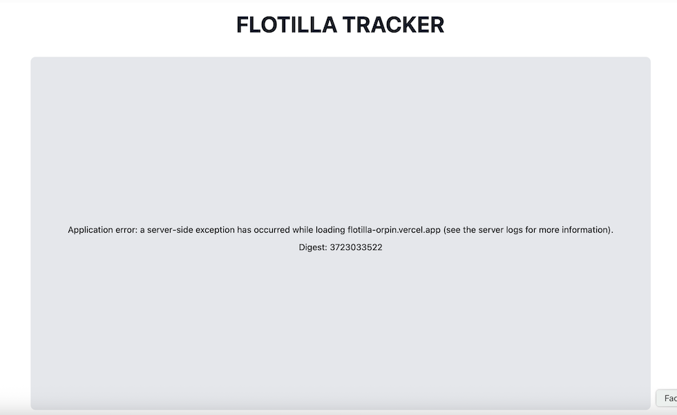 Da qualche minuto il tracker che mostrava le posizioni delle barche della Flotilla non funziona più, per un errore del server che lo trasmetteva. Ieri sera il sito del tracker era andato offline diverse volte, ma mai per un problema al server, ed era sempre tornato online dopo poco.