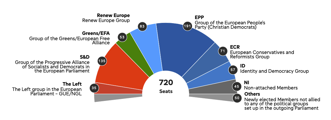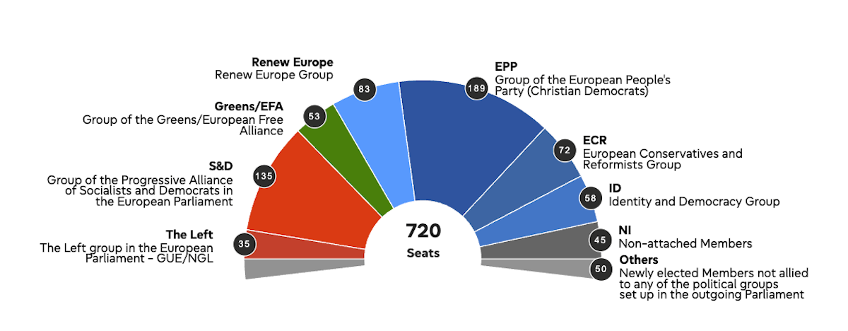 Nonostante un buon risultato in molti paesi, come la Francia, dove Macron ha sciolto il parlamento; la coalizione di Popolari, Socialisti e Liberali dovrebbe tornare ad avere la maggioranza