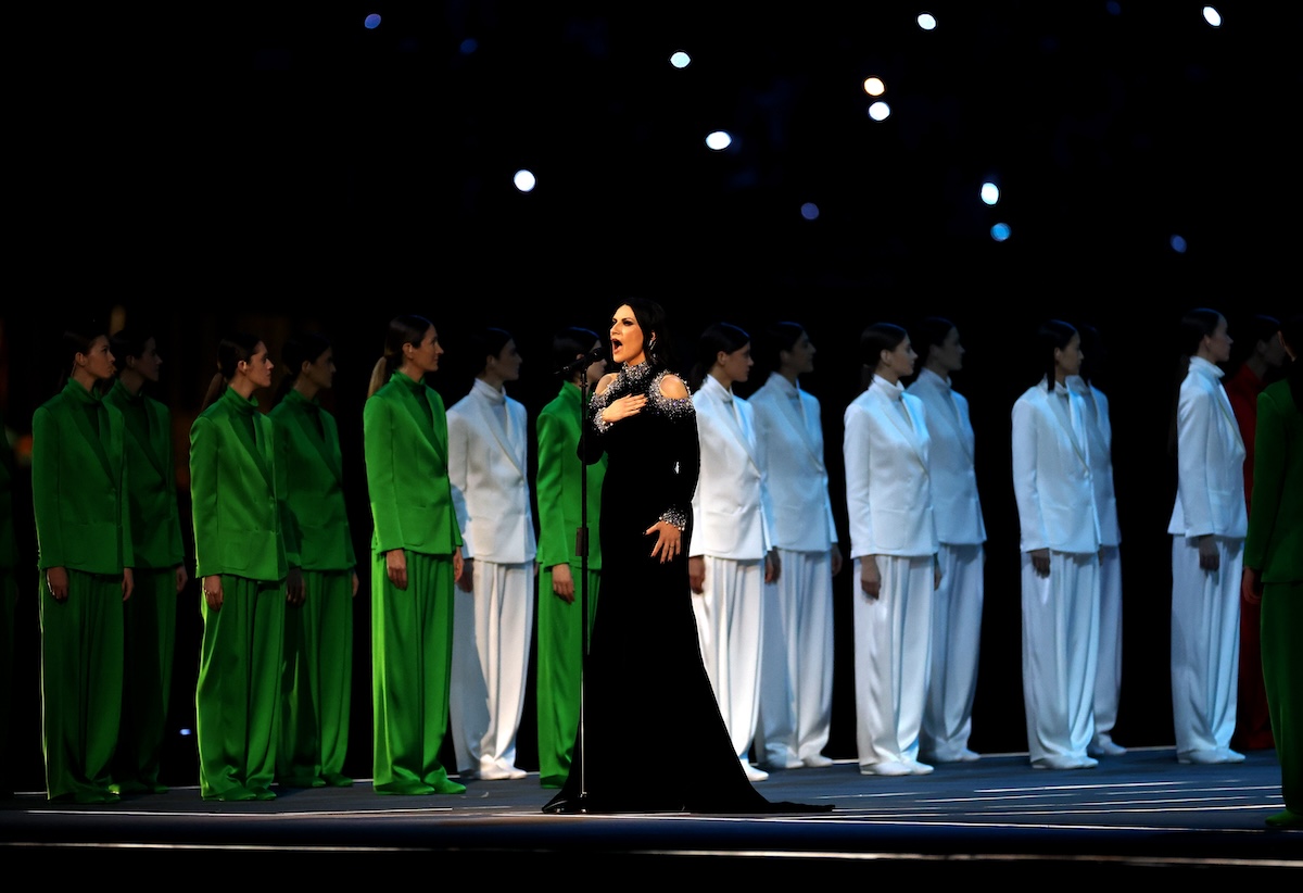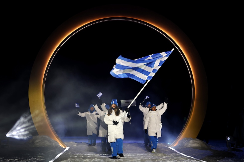 Vittoria Ceretti consegna la bandiera italiana, Milano, 6 febbraio 2026 (Gregory Shamus/Getty Images)