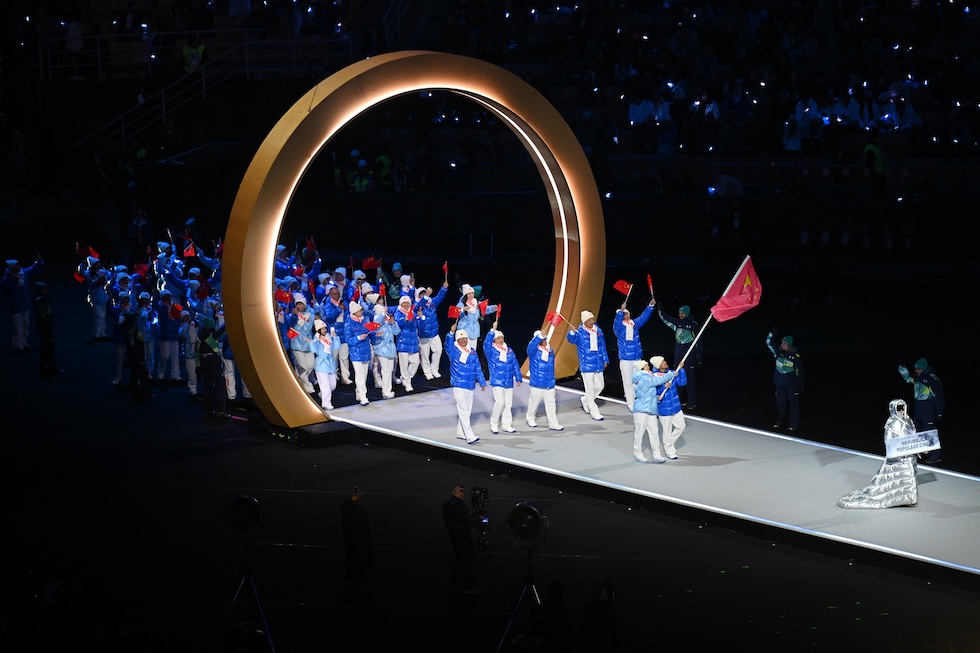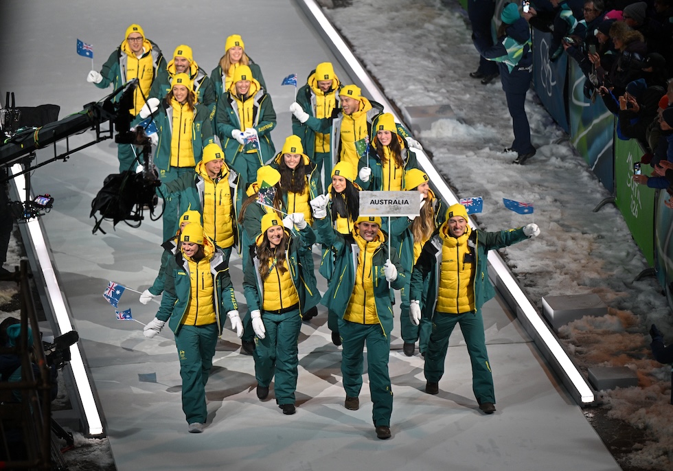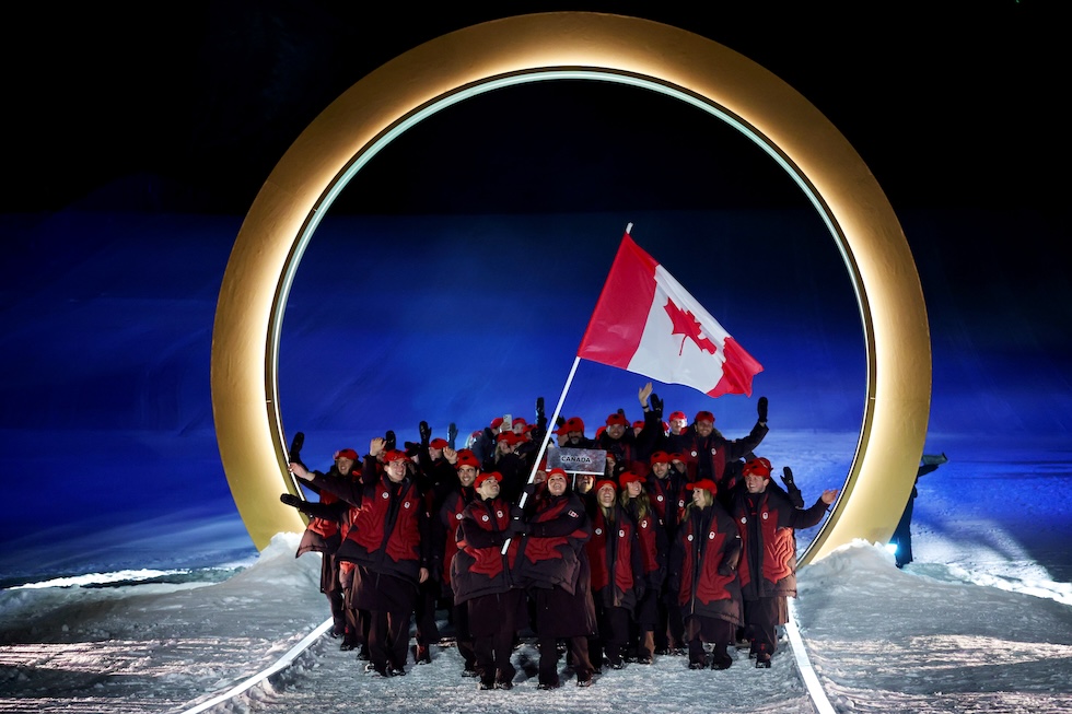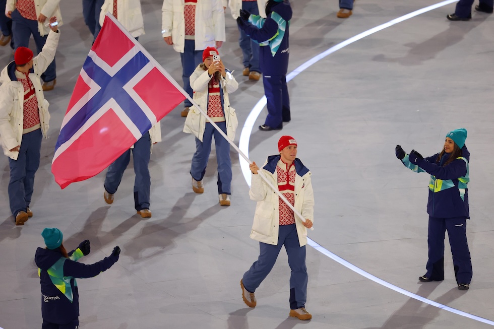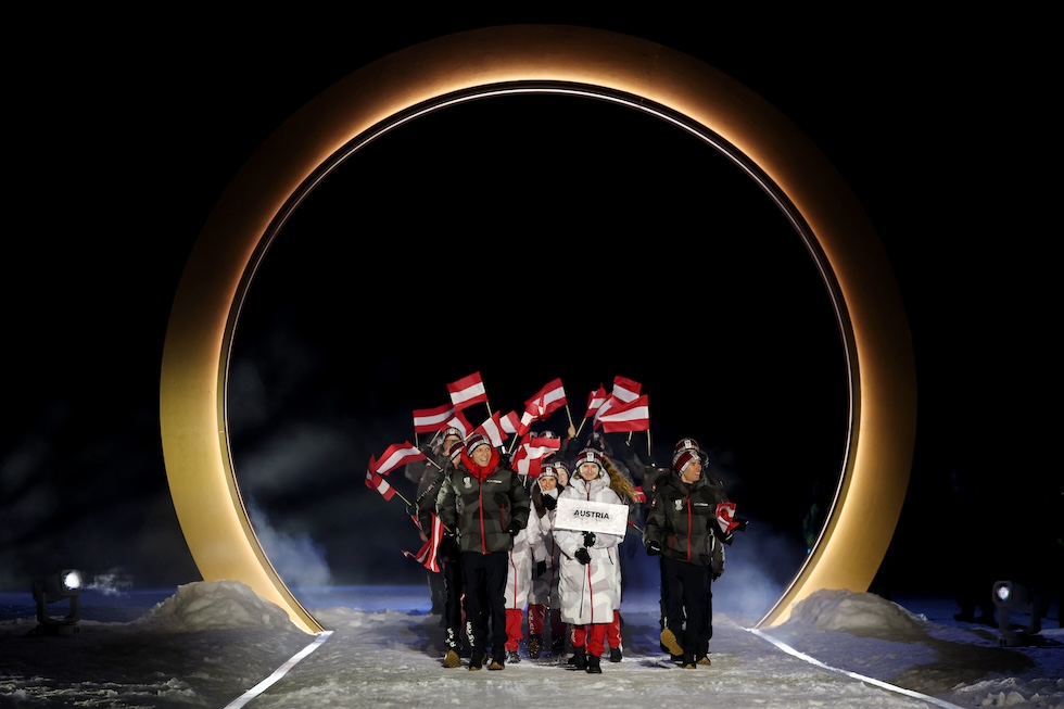 Mentre a Milano la bandiera italiana è stata portata dalla modella Vittoria Ceretti, a Cortina la bandiera è stata portata dai quattro fondisti che vinsero la staffetta maschile a Torino 2006: Fulvio Valbusa, Cristian Zorzi, Pietro Piller Cottrer e Giorgio Di Centa.