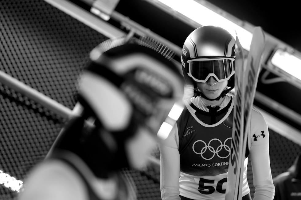 Nika Prevc in attesa di gareggiare, 7 febbraio 2026 (Alex Pantling/Getty Images)