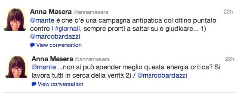 4) I giornalisti italiani sono molto attivi su Twitter, spesso parlano e litigano fra loro su Twitter. Ammettere gli errori su Twitter semplicemente non basta, occorre scriverlo chiaramente sulle proprie pagine web. Per i due o tre sfigati interessati alle notizie che ancora non usano Twitter.