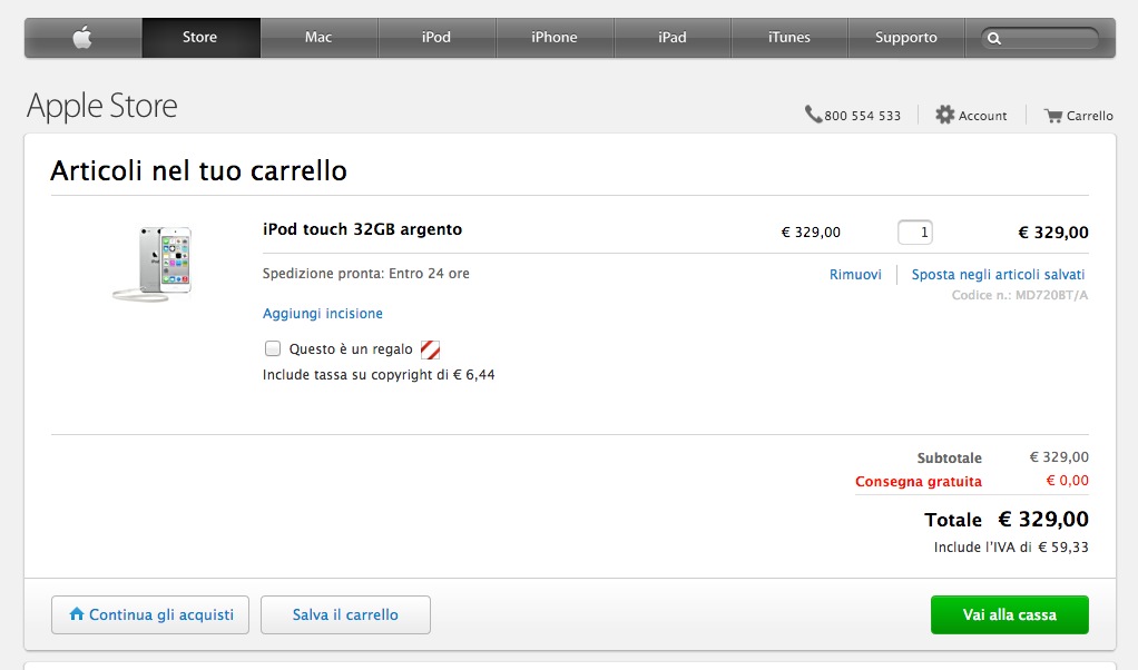 Il Ministro Franceschini, cui non difetta la faccia tosta (o in alternativa l’impudente disinformazione) twitta che la tassa colpisce i produttori di memorie e non i consumatori: bugia dalle gambe cortissime, mille volte ripetuta dai nostri governanti quando si sceglie di attingere da beni e servizi di largo consumo. La tassazione sulla benzina – si sa – la pagano i petrolieri, quella sulle sigarette i proprietari delle piantagioni in Alabama e ovviamente la tassa su tablet, cellulari e chiavette USB la pagano Apple, Samsung e soci. È talmente improbabile questa cosa affermata da Franceschini che gli stessi produttori di hardware quando vai ad acquistare un loro prodotto (qui per esempio sullo store di Apple se si acquista un iPod) specificano bene nel conto che una quota dei soldi del totale sono per la “tassa sul copyright”. Affinché sia chiaro a tutti che lo scaricabarile è un’arma a doppio taglio e nemmeno troppo intelligente.