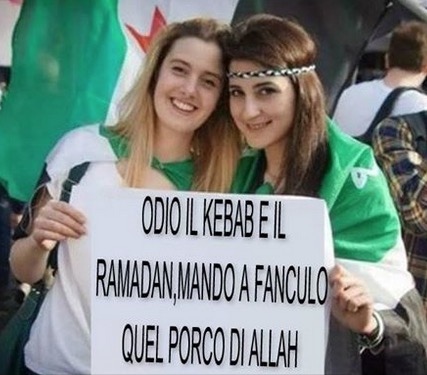Premesso questo ieri ho dato una occhiata alla solita pagina Facebook scritta da un cretino che si intitola sobriamente “Delle due attiviste rapite in Siria non ce ne fotte un cazzo grazie” che si occupa di diffondere un punto di vista “alternativo” riguardo al rapimento di Greta e Vanessa. I contenuti e le immagini postate sono grevi e da III elementare ma, al di là dei toni, non differiscono troppo dai concetti che certa stampa italiana, dal Giornale a Libero, sta pubblicando in questi giorni. In pratica nella migliore delle ipotesi le due attiviste rapite in Siria se la sono cercata, nella peggiore, che gira in questi giorni in molti siti pseudoinformativi sul web, che le ragazze sarebbero spie infiltrate dai servizi segreti italiani.