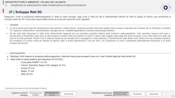 Le due schede più importanti da questo punto di vista sono quella in cui si ipotizza una riorganizzazione dell’offerta infrastrutturale per la banda ultralarga e quella che riguarda l’ormai mitico 5G.