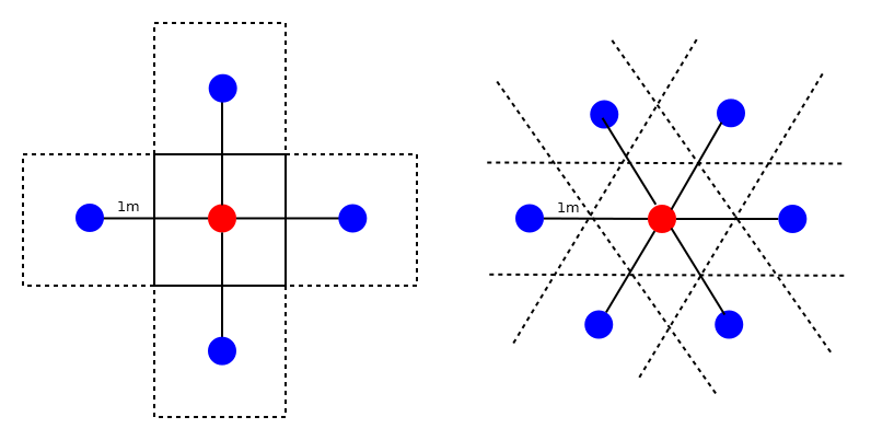 Ma Stefano va oltre! Nel posizionamento delle persone applicato qui sopra, abbiamo fatto una supposizione implicita: che le persone debbano per forza disporsi in un reticolo quadrato. Se invece usiamo un reticolo esagonale, sempre lasciando un metro di distanza tra le persone riusciamo a risparmiare ancora un po’ di spazio, lasciando circa 0,87 metri quadri a testa pur nel rispetto delle norme di sicurezza – ammesso che un metro di distanza sia sufficiente per proteggersi dal contagio. Morale? Coronavirus o no, la matematica è sempre tra i piedi, e quindi tanto vale saperla sfruttare bene!