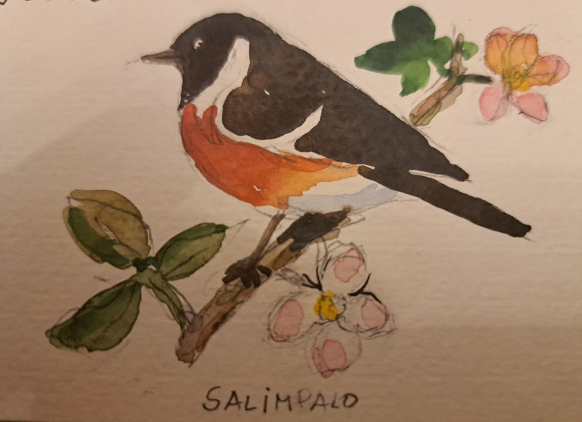 In alto i cuori, e che sia proprio un sorvolo, anche per salutare Fulco Pratesi, fondatore del WWF in Italia e padre nobile della protezione della natura. Amico delle bestie e delle bestioline selvatiche, incantato dalla loro bellezza e dalla loro libertà. Era anche un bravissimo disegnatore naturalista, matite e acquerelli. Qui sotto un suo saltimpalo (uccellino insettivoro) che mi regalò nel 2016. Stava in un cassetto, di qui in poi sarà appeso bene in vista vicino a una finestra, così può volare via quando vuole.