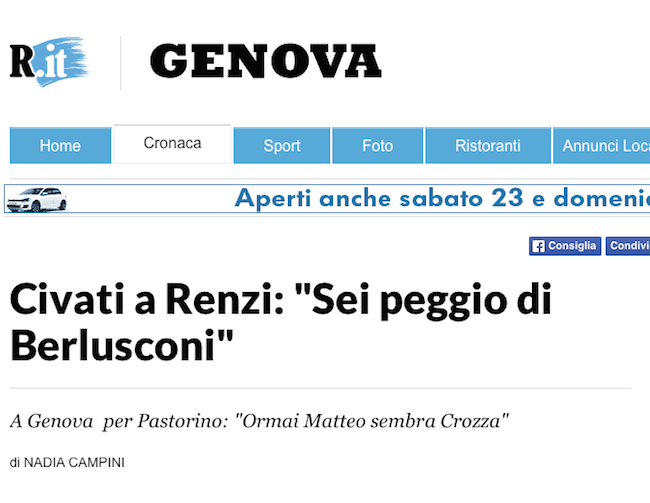 Non ho mai detto che Renzi è peggio di Berlusconi, e non l'ho detto oggi durante la mia visita a Genova [Continua]