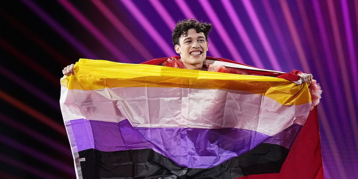 Nemo all’Eurovision tiene una bandiera dell’orgoglio non binary (Martin Sylvest Andersen/Getty Images)