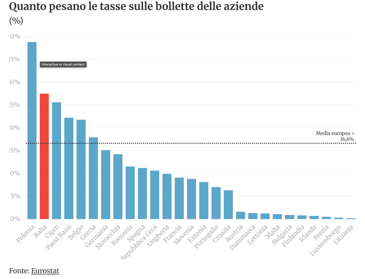 La guerra e le sanzioni c’entrano fino a un certo punto: le aziende italiane pagano molto più della Germania, della Francia e della Spagna