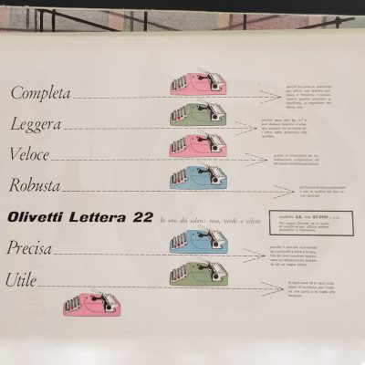 La “Lettera 22” di Marcello Nizzoli e Giuseppe Beccio per Olivetti (1950), attraverso la soluzione di un poster rebus a cura di Paul Rand, grafico americano famoso per il suo sapiente uso dell’immagine tipografica.