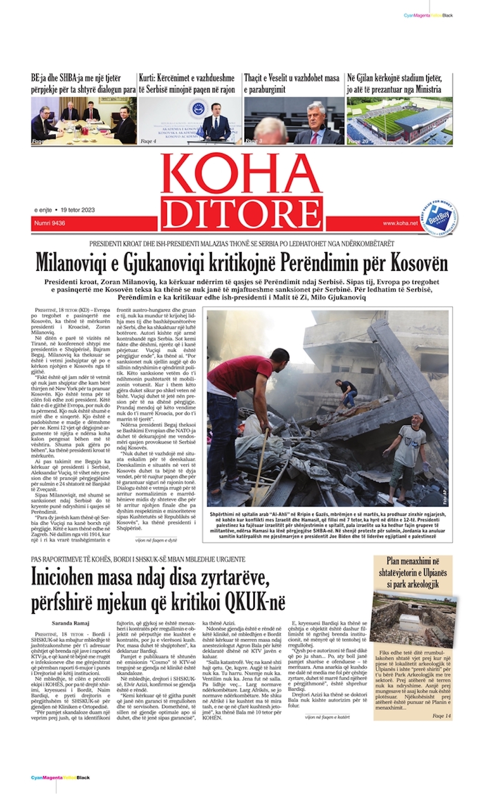 – La prima pagina di giovedì di Koha Ditore, e le foto di Gaza pubblicate da Vice Arabia