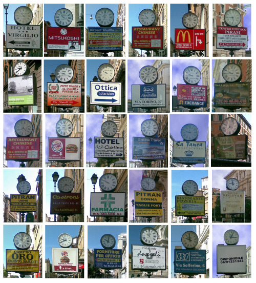 Un lettore di Cartellopoli ha fatto uno strepitoso collage con 30 orologi stradali, per evidenziare in un colpo d’occhio che segnano tutti ore diverse. Ovviamente, ci si fida del fatto che ha scattato le foto pressapoco nello stesso momento. Nell’articolo si mette in evidenza anche la qualità non proprio eccelsa della grafica delle inserzioni, ma questo sembra essere più un problema culturale che amministrativo.