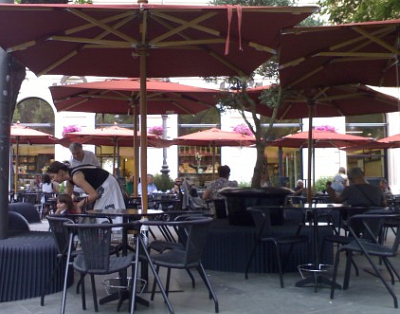 I divieti-di-tavolino assurdi e criminali (perché vietare tavolini significa, automaticamente dare il via libera sulla stessa porzione di territorio alla sosta in divieto di maghine e suv) non hanno funzionato e l’esercente, una delle panetterie più famose della città, ha potuto realizzare una eccellente piazza in stile parigino. L’insegnamento è che basta fare le cose per bene, basta mettere i corretti paletti, basta avere la lucidità e il passo per dire cosa e come si deve fare e cosa e come no e poi tutto si può, anzi si deve fare.