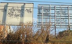 Tra le chicche, anche quello che viene definito “degrado double face”, cioè il graffito sul retro dei cartelloni. Per Malaroma siamo la capitale mondiale dei graffiti. Difficile dirlo con certezza, ma sicuramente ci piazziamo bene: