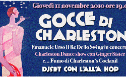 È poi una serata speciale anche dal punto di vista alimentare, con l’aperitivo a buffet e drink dalle ore 19 (10 euro), più degustazioni varie e la presentazione di un cocktail chiamante Fumo di Charleston, che a quanto pare fa fumo veramente. Dalle 23,30 ingresso gratuito e altri balli con la dj Lalla Hop.