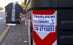 Ma che strategia commerciale è quella di associare il proprio nome a quello di un cassonetto? Mah. Da leggere questo formidabile resoconto di Degrado Esquilino, che con coraggio da vendere ha anche interagito con uno di questi attaccatori di adesivi: